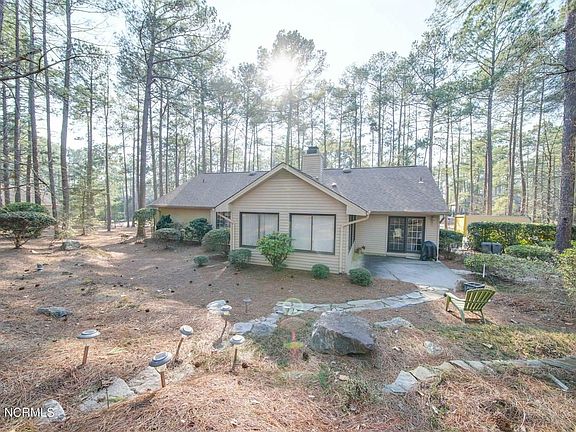 Nestled on a wooded lot, this wonderful 3 bedroom 2 bath home on a large 1.32 acre lot in the gated community of 7 lakes west. Enjoy this 2100+ SF house, all on one level with Hardwood floors in the main living areas. The floor plan offers an open living/ dining room, a four season Carolina room, eat in kitchen and a seperate laundry room. Three bedrooms and two full baths are together at one end of the house. The main bedroom has a walk in closet and en suite bath with a shower. There is a two car garage with a work bench and storage. The house has a circular driveway in front and a side entry garage. New Roof 2021 . Enjoy the gated community of 7 Lakes West with Lake Auman at the center. This community also has a marina/ boat launch, beach area, picnic table and pavillion at Johnson Point. A community pool, tennis courts and playground near the community center. Two gates for residential use for east access to 211 and points North or South. Grocery store and other amenities are a short distance from the main gate.