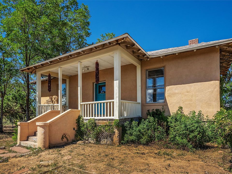 Artists make the world more beautiful,and the transformation of this 1925 adobe in leafy, historical La Cienega is no exception.The remodel and new floor plan feature stunning bathrooms, gorgeous oak floors, and a soaring 18-foot timber-vaulted ceiling that creates an airy, expansive loft and storage space. Modern living in a close-to-Santa Fe rural setting is harmoniously integrated into the earthy solidity of this 100-year-old home, with thick, matte diamond-plastered adobe walls, framed hallways, and original woodwork. Feel the home’s history and sense of place- it's believed this home was part of extensive farmland dating back to the Pino family's Spanish land grant, which included the historic Las Golondrinas, an important stopping point along the "Royal Road" from Mexico City. Built on a knoll, this property offers views of the Sangres and Ortiz mountain ranges in an area renowned for its natural springs, rich archaeological sites, and present-day farms, boasting green fields dotted with cottonwoods and grazing horses.This sunny home includes a newly created open kitchen and living area illuminated by a Phillips Hue lighting system. A charming entry space makes for a perfect home office.The beautifully appointed kitchen features white marble counters, a double-drawer Fisher Paykel dishwasher, and a Samsung refrigerator with customizable doors.The primary bedroom has a cozy wood-burning stove and a chic ensuite bath. The electric panel and plumbing have been updated, there's a private well and a 2020 septic system with new lines. The home also features a Navien on-demand hot water heater. Set on nearly 2.5 acres, this property offers room to grow in every sense, whether for gardening, outdoor entertaining, with space to build and for animals, big and small. Your lovely Los Pinos Road neighbors include the Leonora Curtin Wetland Preserve, the award-winning Ojo Caliente Spa and Las Golondrinas. The property is zoned Traditional Community with many allowed uses.