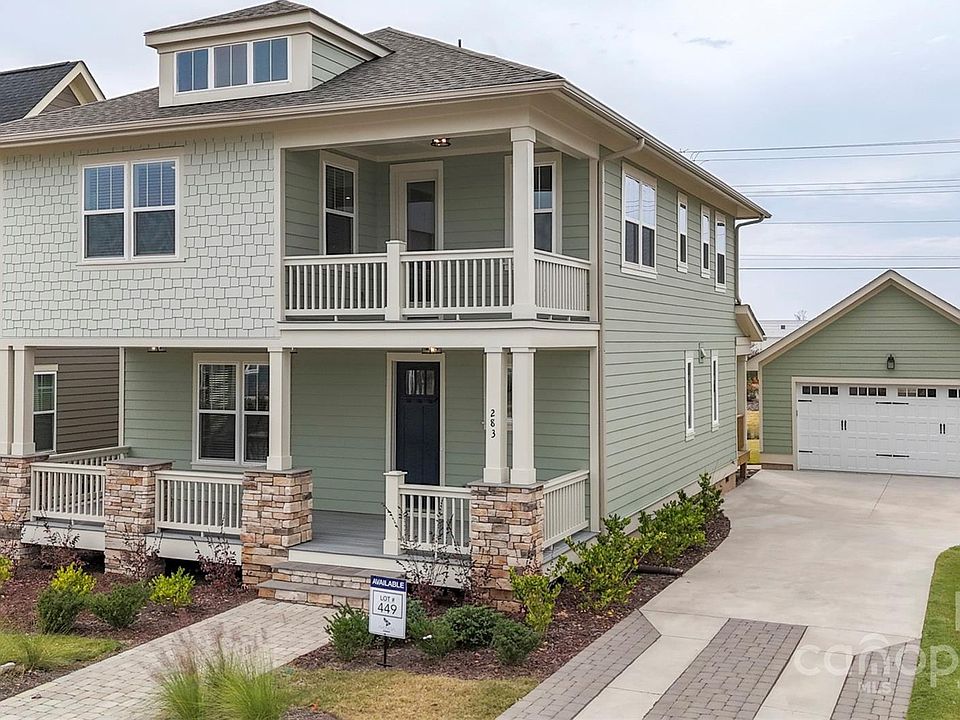 Welcome home to this stunning new-construction residence in the vibrant Riverwalk community of Rock Hill. This beautifully crafted home offers an exceptional combination of style, space and location. The spacious 2-story “Nadin” plan features an open first floor with a generous great room, a well-appointed kitchen complete with island and walk-in pantry, and an informal dining area — ideal for entertaining and everyday living. A front-facing second-level balcony provides a scenic spot to relax and take in the surroundings. The upper level includes three bedrooms and a convenient laundry room—smartly designed for modern living. A 2-car attached garage and a corner lot setting add to the appeal. Thoughtful exterior touches include covered porch, side porch and deck areas for true indoor-outdoor living, all nestled on .22 acres within walking distance to Riverwalk of the Carolinas! If you’re looking for a home that marries refined living with dynamic access to nature, recreation and convenience—this one is for you. Schedule a tour today!