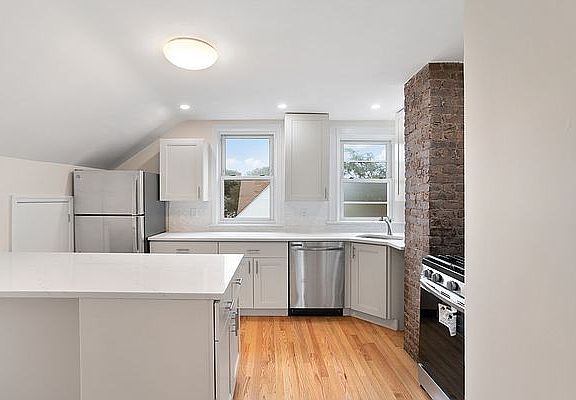 Designed as a condo, this 6rm unit is available as a 9-12mo rental until the condo conversion process is completed. Potential condo shoppers are invited to apply. Located in Ditmas Park, Brooklyn, just south of Prospect Park, this 3 bdrm duplex apt, is on 2nd & 3rd floor of a 2 family house. A spacious apt with front and side door entrances, offers a private entrance that leads to this 2nd and 3rd floor apartment. Enter apt from front stairway which leads to the 2nd floor with 2 spacious bedrooms, full bath and an office space with a front deck. A stairway leading to 3rd floor, with hardwood floors throughout, is an entrance to a front sun-filled living room featuring a high slanted ceiling accented with wooden beams and a ceiling fan. For relaxation and star gazing is an adjoing expansive front porch with views of the landmarked, tree-lined, Ditmas Park neighborhood. On the same floor is a full dining room with an adjoining eat-in kitchen which is equipped with top-of-the line stainless steel appliances including a dishwasher, stove & refrigerator and a separate laundry room. The master bedroom, offers plenty of closet space, and a full bath. Each room is equipped with wall mounted air-condition units and an abundance of closets and storage areas including a side entrance with storage space for bikes and a stroller. This apt is family friendly along with the Ditmas Park community which is a residential area with tree-lined streets and historic Victorian style homes. It is located just a short distance south of Prospect Park, Brooklyn Museum, Botanical Gardens, and the Brooklyn Public Library and offers easy access to two express train lines, downtown and crosstown buses. There are lots of shops, supermarkets and the area is known for its charming restaurants and shops.