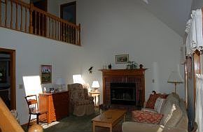 A cape style home with character! Terrific design includes a living room with cathedral ceiling and a balcony for second floor living spaces as well as a fireplace. First floor master bedroom. Also a laundry is on the main level so single floor living is an option for this home. Three bedrooms upstairs and a full walkout basement. The large rear deck and private yard connects to a large tract of common land.