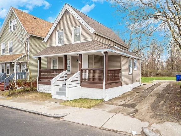Hola! All done waiting for you! New roof on this vinyl sided home. Nice front porch. Updated kitchen with tile floors and plenary of cabinets. Convenient Laundry room off kitchen. Living room and first floor bedroom with new floors and windows. Upstairs we have a spacious area with full bath and two bedrooms with closet space. Fenced-in yard for plenty of outside activities.