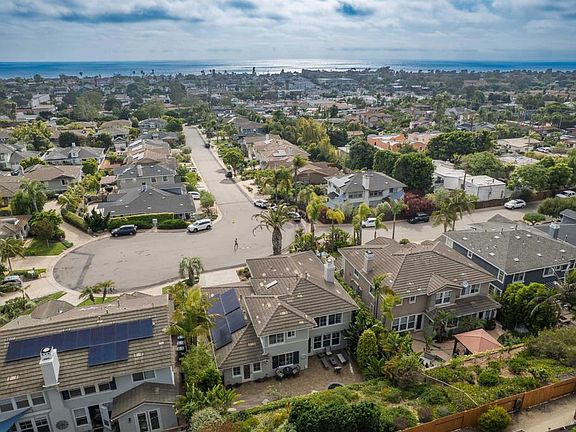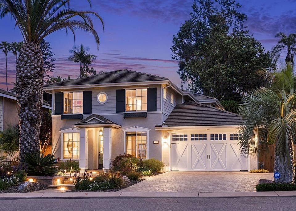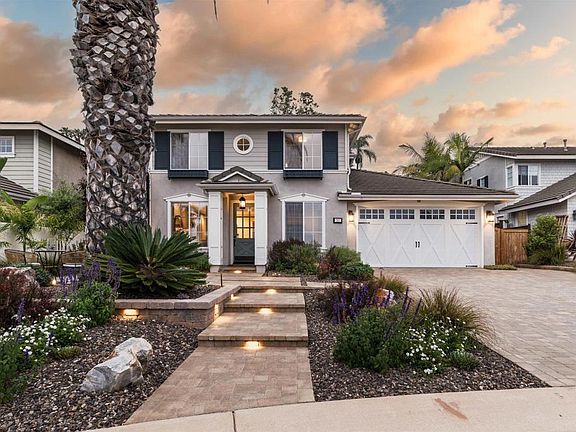 Set west of I-5 on one of the largest lots in Leucadia’s coveted Bay Laurel neighborhood, this beautifully upgraded craftsman-style home blends classic charm with modern coastal comfort. Perfectly positioned at the end of a quiet, hilltop cul-de-sac—just blocks from iconic surf breaks at Grandview, Beacons, and Moonlight beaches, and mere steps from Leucadia Oaks Park—this west-facing home captures the essence of elevated, breezy living in one of North County’s most sought-after locations. From the moment you arrive, the attention to detail is unmistakable. An extended paver driveway, fresh fencing, mature landscaping, and custom lighting lead to a bright, open interior where every surface has been thoughtfully reimagined with high-end, designer-selected finishes. The entry opens to a spacious formal dining room and a versatile home office just off the foyer. Framed by custom barn doors, it offers flexibility and can easily serve as a guest room or fifth bedroom. Step into the open-concept kitchen and living room, where oversized windows invite in natural light and a marble-accented fireplace anchors the space with timeless warmth. A single French door extends the living area outdoors, creating a seamless indoor-outdoor connection. The remodeled chef’s kitchen is both refined and functional, featuring a generous quartz island with a gas cooktop, double ovens, a Sub-Zero refrigerator, and custom floor-to-ceiling cabinetry matched to the original shaker style. Designer pendant lighting brings a modern touch, while extra-long cabinetry around the refrigerator offers ample storage and discreet pantry space—complete with a whole-home water softener and reverse osmosis system for added comfort.Just off the kitchen, a sunny breakfast nook with coffered ceilings, built-ins, and a second French door creates a bright, welcoming space to start your day—with direct access to the backyard. Nearby, the laundry room doubles as a prep area, offering ample counter space, an additional sink, extensive cabinetry, and a convenient drop zone. Upstairs, soft wool carpeting leads to the expansive primary suite, which includes a private retreat—ideal for a home office, nursery, or conversion to a 4th bedroom. The ensuite bath feels like a spa, featuring dual vanities, a soaking tub, walk-in shower, and large walk-in closet. Two additional bedrooms share an updated full bath in a separate guest area, ensuring privacy for visitors. The private backyard is designed for year-round enjoyment, with custom hardscape, tropical landscaping, and a built-in fire pit with curved seating—creating the perfect setting to relax or entertain. Additional upgrades include expanded pavers, new fencing and gates, upgraded irrigation, landscape lighting, enhanced drainage, fully owned solar with Tesla Powerwall, a 3-car tandem garage, new garage door and lift, custom window treatments, updated fixtures, refreshed cabinetry, and soundproofing in the home office. Located just minutes from top-rated schools, Encinitas Ranch Golf Course, the San Diego Botanic Garden, and the vibrant shops and restaurants of downtown Leucadia, this is a rare opportunity to own a meticulously maintained home in one of North County’s most walkable and desirable coastal communities. A true blend of timeless design and modern ease—this is coastal living at its best.