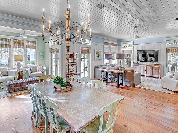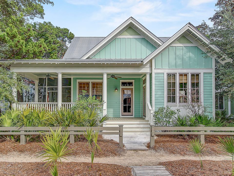 Buyer backed out due to unforseen health issues. New Fence installed soon. Well-equipped and sold fully furnished with everything you would need to make this a true turnkey property. Rental ready with strong history, in 2022 the property grossed $277,000. Phenomenal outdoor spaces including a beautiful pool and hot tub with plenty of room for multiple lounge chairs or to grill out. An expansive side porch perfect to sit around and enjoy smore's over the fire pit, or a screen porch off the living room for those nights you want to eat al fresco. 4BR/3BA plus a large bonus room including 2 sets of bunk beds. This home is in a prime location, conveniently located next to Camp Watercolor, which includes a lazy river, waterslide, playground, basketball court, The Canteen Restaurant & Bar, parks, and green spaces. Also, this property is just a short walk to the tennis courts or The Seaside community. Enjoy a bike ride or golf cart drive to the Beach Club, Sand Hill Circle Frog pool or Boathouse. A welcoming front porch with a hanging porch swing leads to an open living, dining & kitchen including gorgeous wide planked wood floors. The kitchen features new Thermador stainless steel appliances, granite countertops, custom cabinetry, a large breakfast bar, and a tiled backsplash. Dining table large enough to accommodate the entire family. Popular floorplan with 2 ensuites on the first level. A spacious primary room with a king bed and another secondary bedroom with king bed setup. Upstairs includes a room with 2-queen beds, another room with a set of bunks and a large game/bonus room with 2 sets of bunks and a pull-out couch. That room can sleep 6 comfortably, perfect for the kids. Updates/improvements include new appliance, new tankless water heater, new AC units and a 6-seater golf cart included. Exceptional community amenities include six beautiful swimming pools, a Gulf front beach club, nature trails, a Boathouse offering kayaking, canoeing and paddle boarding and outstanding tennis facility.