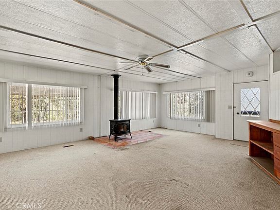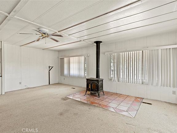 Discover serene living with this charming 2-bedroom, 2-bathroom home, perfectly situated on a sprawling 5-acre lot. Built in 1977, this 1,440 sq. ft. residence combines the tranquility of rural living with modern upgrades, including an owned solar system for energy efficiency. Inside, the home offers a spacious kitchen, an inviting living room, and a primary bedroom featuring an en-suite bathroom. The convenience of an interior laundry room adds to the home's functionality, while recent improvements such as new central heat and air (installed in April 2024), an evaporative cooler, and a wood stove ensure comfort year-round. Enjoy the natural light that fills the home, thanks to dual-paned windows and a slider door leading to the outdoor space. Ceiling fans provide additional airflow, and an awning adds shade to your outdoor experience. The oversized 2+ car garage is ideal for car enthusiasts, with an additional shop area for hobbies or storage. The circular driveway provides easy access and ample space for RV parking. With a water well and water storage tank on the property, you can rest assured of a consistent water supply. This property offers a perfect balance of indoor comfort and outdoor opportunity, ideal for those seeking space, privacy, and self-sufficiency. Whether you're looking for a peaceful retreat or a practical homestead, this home has everything you need to live comfortably and sustainably. Don't miss out on this unique offering!
