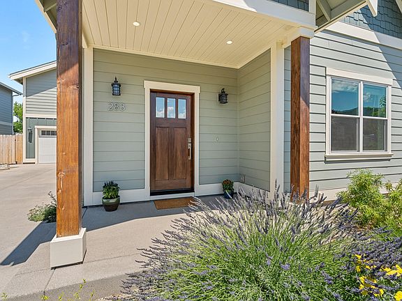 Located in sought-after Old Bridge Village, this 2021-built home with legal ADU offers quality, comfort, and efficiency. The 1,636 sqft main house features 3 beds, 2.5 baths, vaulted ceilings, and an open floor plan with white oak hardwoods, solid core doors, and premium fixtures. Enjoy a bright and airy living space with a stylish kitchen featuring quartz counters, breakfast bar, gas range with hood, and top-tier appliances. The main-level primary suite includes French doors to the patio, walk-in closet, and spa-like bath with tiled shower and heated floors. Above the 2-car climate controlled garage, the 546-sqft ADU provides great flexibility and opportunity for additional income, featuring a full bathroom and kitchen with pantry. Private backyard with BBQ/fire pit stub, ductless mini-split system, and beautiful mountain views—all in a quiet, no-HOA location. Very close to downtown Talent.