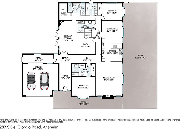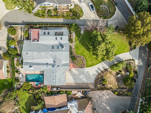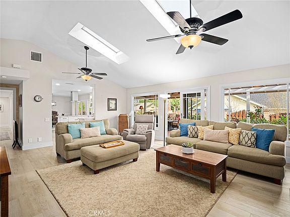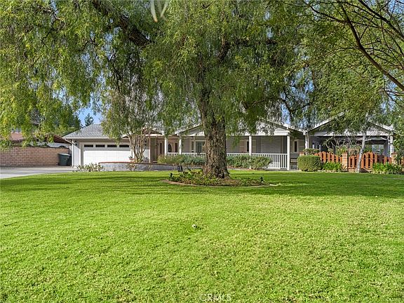 Welcome to 283 S, Del Giorgio Rd, a beautiful single family residence located on a private road in the City of Anaheim Hills. Available for the first time in nearly 40 years, the home features 3 bedrooms, 3 1/4 bathrooms, 2,573 SF of living space, and is situated on an approximate 25,200 SF flat lot. Upon approaching the home from the huge front yard, you will immediately notice a large front porch, perfect for enjoying your morning coffee. The large entryway makes way to the open family room with vaulted ceilings and fireplace. Adjacent to the family room is the stunning, recently remodeled kitchen, featuring white shaker cabinets, quartzite countertops, dual ovens and Bosch stainless steel appliances. There are two primary bedrooms with one of them boasting beamed ceilings, fireplace, walk-in closet and large open den that could easily be converted to an office. The spa like ensuite bathroom has also been recently remodeled featuring quartzite countertops, dual sinks, and oversized custom tiled shower. French doors lead to a private Pebble tec pool and spa with relaxing waterfall feature. The approximate 935 SF covered patio with vaulted ceilings is an entertainers dream featuring an outdoor kitchen with oversized redwood bar and rooftop deck. Other impressive features include LVP flooring, oversized 2 car garage, Culligan whole house water filtration system, RV/Boat storage, renovated laundry area with utility sink, and an abundance of fruit trees. Close proximity to shopping, dining, major freeways, and award winning schools. This is one home you do not want to miss!