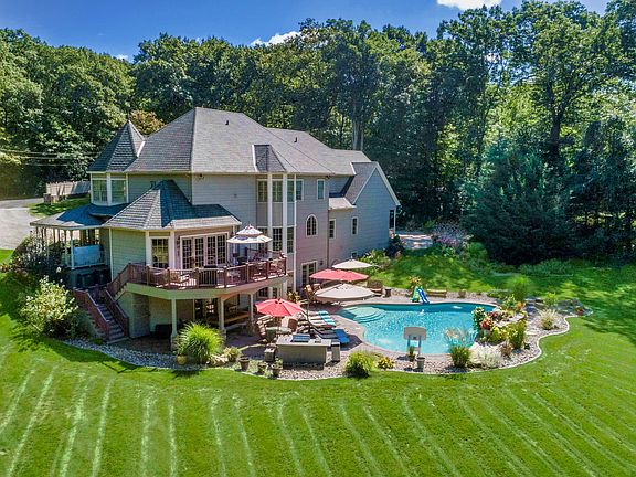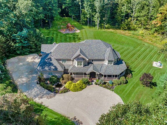 An Exceptional Private Retreat awaits on over nine beautiful acres. Extraordinary details throughout with functional living spaces and designed with every luxurious amenity imaginable. Gorgeous wrap around mahogany covered porch (with hot tub). Stunning two-story entry. A chef's kitchen offering the most discriminating buyer a large center isle, custom cherry cabinets, granite counters, handmade copper sink, Subzero refrigerator/freezer, six burner Viking stove, two dishwashers, convection oven and large dining area. Open concept seen and 9+ft ceilings throughout. Formal dining room (with custom cabinetry and limestone counters) living room with wet bar, gas fireplace and superb piano room. Brazilian cherry flooring. An abundant use of windows and French doors blend the interior and outdoor spaces. Private office, full bath and powder rm complete main level. Impressive master suite with octagonal ceiling, Brazilian cherry floors, gas fireplace, walk-in closet (with organizers) and elegant bath (claw foot tub, antique vanity and tiled shower with jets/body sprays). Three additional guest rooms (two share a bath, one an en-suite), and media room with vaulted ceiling and entertainment center. The finished lower level (possible in-law space) offers a recreation area, full bath, game room, den and transitions easily to the exterior to enjoy the salt water sports pool with water fall and deck jets, patio area and outdoor kitchen. Russound whole house audio system. Energy Star Rated Home. Look no further...this truly is a spectacular home set in an idyllic setting!Features include... Mechanicals: Energy Star Rated Home-Icynene insulation outside walls and attic. 400 Amp service with transfer switch for generator -Cartell vehicle detector with annunciator/lights integrated doorbell/intercom/phone system -Heat recovery ventilator-Viessman programmable boiler- Trane variable speed air handlers with auto humidification-Security System-1000 gallon propane tank. Floored Attic- Conditioned Space-Roof has 50 year shingles Certain Teed Centennial Slate Shingles- Certain Teed Cedar Impressions Siding-Cedar Window Casings- Pella SDL windows.Interior: Brazilian cherry floors- Mahogany stair banister with wrought iron railings-3Way/4Way Decora switches in MBR control outside lighting-Security system-Propane heat- Central vacuum (garage and basement included)-Russound whole house audio system with 6 separate sources, and 12 zones including front porch, hot tub area, garage, basement - 3 car garage with hot/cold water. -Two Mendota gas fireplaces- Imported French Mantel in living room-Antique vanities in powder room and MBR-3 laundry hook-up- Chandelier motorized lift main foyer- Mahogany stained glass front and MBR doors.Exterior: Mahogany wrap around porch with hot tub-Monarch deck - In-ground heated automated salt water sports pool with 17 jets- Patios-Outdoor kitchen- Underground utilities.