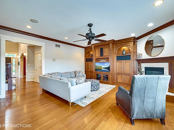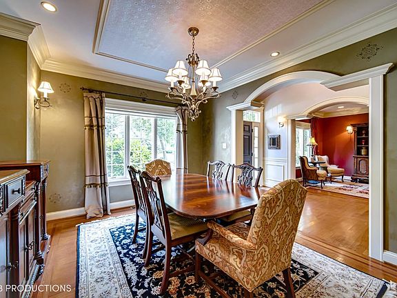 Former Parade Home has been lovingly maintained & extensively improved. Recent updates include remodeled kitchen with today's desired finishes and amenities. Main floor was designed for grand entertaining & comfortable living with a formal living room/music room, dining room, family room adjacent to the kitchen, & year-round sunroom which opens to cedar deck with stairs to stone patio with a panoramic pond view. The second floor has the generous owner's suite with remodeled bath including white custom cabinets, ceramic floors, tiled shower, soaking tub, & a walk-in closet to covet. Three add'l bedrooms w/custom closets, bonus room/5th bedroom, & finished laundry complete the second floor. The finished daylight basement adds an exercise room, media room, craft room, full bath, great storage, & stairway to garage. Discerning amenities include hardwood floors, surround sound, iron spindles, custom molding, front & back staircases, sprinkler system, security system & heated 3 car garage.