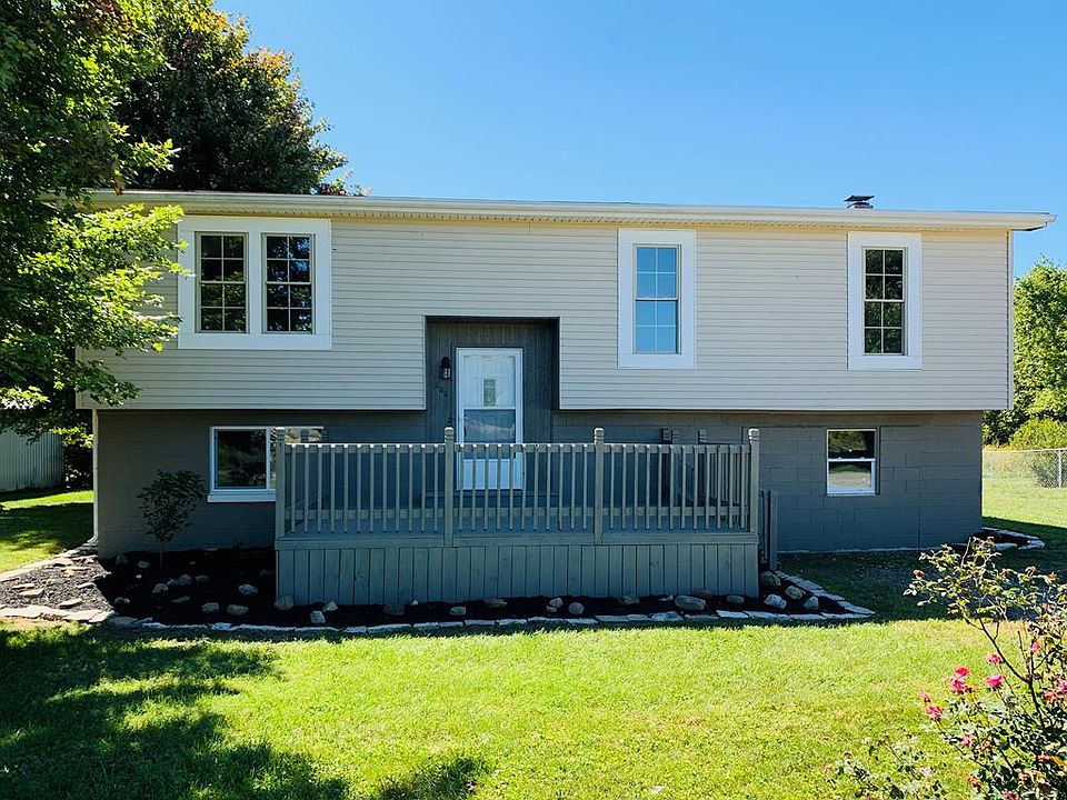 You won't want to miss this beautifully renovated home, affordably priced and just minutes to town! This 3 bedroom 2 full bath house has been tastefully updated with a modern color scheme and fixtures. The original hardwood floors have been refinished with a rich dark walnut color that blends perfectly with the light gray walls and crisp white trim and doors. The bathrooms have been completely remodeled and include ceramic tile floors, new vanities, a tub/shower combo in the main bathroom and walk in shower in the owner's suite. The kitchen boasts new cabinetry, butcher block countertops and stainless steel appliances. Adjacent to the kitchen is a formal dining space that leads out onto the deck which overlooks the private backyard. The walkout basement could be easily finished or used as-is for additional living space. Call today to schedule your private showing or virtual tour!