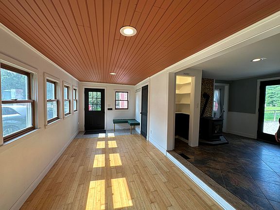 Large sundrenched sunroom or could be a formal dining room greets you when you arrive home. Gally style kitchen has a large number of cupboards, propane cook stove, and dishwasher. Adorable widow over the kitchen sink allows you to take in the view of the back yard. First floor bathroom and bedroom are welcome features. Two bedrooms on the second floor one could be considered the primary bedroom. The attached red barn is accessed through a hallway with the washer dryer and pantry for convivence. The Barn itself is beautiful with plenty of room for one car, a workshop off the back with direct access to the back yard and to the attached greenhouse.