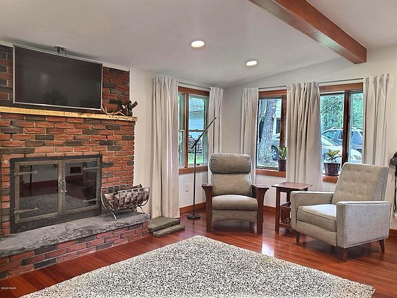 Don't miss out on this gem of a home! *No Community & Low Taxes!* Completely updated this home glows with pride of ownership! A paved drive & 2 car garage welcome you home. Enter into the house to find refinished original pine hardwood floors and amazing wood built in's that grace the bedrooms. Main bedroom on 1st floor accommodates a king sized bed! Updated kitchen offers a gracious amount of storage and counter space. (Note the ''hidden'' dishwasher!) The bathroom is also updated with a tile surround shower and current fixtures. Large living room, relax in front of the wood burning fireplace or host the holidays. Outdoor enthusiasts dream, just a few min from Lake Wallenpaupack & Promised Land State Park. Conveniently located close to Route 84 an easy quick commute to NY & NJ!