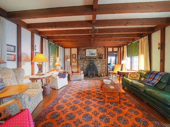 A truly stunning one of a kind Adirondack two-story 5 bdrm, 2.5 bath lakehouse in the Pocono Mountains right on a private motorized lake. Built in the 1920s still boasting many period nostalgic benefits. Positioned on over a 1.5 acre wooded lot w/ over 250' of lake frontage with two docks. Comes w/ the original blueprints which are blue. Back from the road behind a stone wall with gated Stone pillars. Interior w/ wide plank floor & walls w/ exposed beams. Doors custom-made & fitted w/ iron fixtures & leaded glass thru-out the home. Large LR w/ cozy FP. Lake room w/ great sunset views only a few feet of Fairview Lake. Beautiful lakefront stone porch & full basement & garage. Plenty of comfortable interior space for you & your family! 2nd owners! You won't find anything else like it!