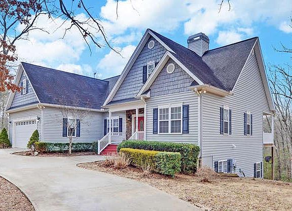 LAKE ACCESS AND A BEAUTIFUL HOME!! This home has three bedrooms, two baths, laundry, and two car garage on main floor. Hardwood floors, cathedral ceilings, stone wood burning fireplace and foyer as you enter the home. Dining room area, nice kitchen with stainless steel appliances, large master with spacious bath with double vanities. Split floor plan with two bedrooms and bath on opposite of master. Lots of windows for light. Basement with two bedrooms and bath and is open with huge room for more living space or for entertaining. Very gentle yard, circular driveway, and access to community ramp to Lake Nottely. Paved roads and underground utilities, established lake community of nice homes, and less than five miles to town. House is very well maintained and move in ready.