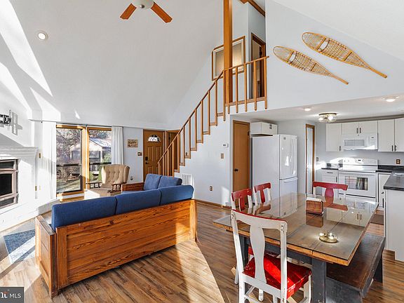 Beautiful Elmwood model Chalet used as a Airbnb, could be a full time residence, weekend getaway, or keep the momentum and have this investment in your portfolio! Class A Membership Available includes golf, swimming, indoor recreation facility, and more! Location is nearby the resort restaurant, pool, and pro shop. From the deck and screened porch you will see the 1st hole of the course. Lot is lightly wooded and has a paved driveway with 2-car carport plus storage shed. Inside is awash in natural light with soaring ceiling in the great room that features a wood burning fireplace and two sliding glass doors to the open deck. The dining area adjoins the kitchen and provides access to the screen porch for al fresco dining; pest-free! The primary bedroom is on the main level with a full bath, plus there are two large guest rooms on the upper level with the second full bath. Easy to care for home has luxury vinyl plank throughout and freshly painted. This home is turn-key, as everything you see becomes yours to hit the ground running on your new home!