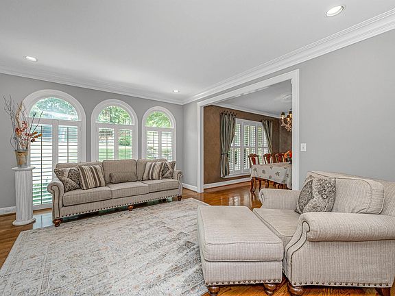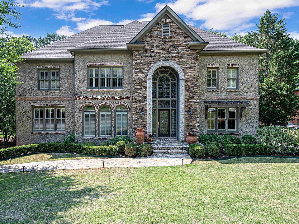 This former Show Home still has it! Updated and move-in ready, this home welcomes you with beautiful curb appeal. Gorgeous two story leaded glass windows let natural light pour into the foyer featuring a beautiful staircase with custom iron railings. Formal living room and dining room warmly welcome guests. Beautifully updated eat-in chef's kitchen with Wolf Range has everything needed for entertaining and opens to the two story great room featuring a magnificent limestone fireplace. Main level master suite has a sitting area, huge 5 piece master bath, and his and hers closets! Upstairs you will find 3 large bedrooms, one with private bath and the other two with a shared bath, craft/play room and cedar closet. Finished basement features a huge media room, wet bar, game room and office space. Covered and uncovered deck space with Leaf Guard system overlooking the flat, landscaped backyard. New HVAC units will keep you cool for many summers to come. Hurry, before its gone !