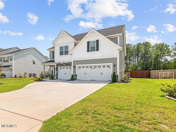 This immaculate 3,307 sqft. home offers the highly desirable Warwick floor plan by Mungo Homes, featuring 5 spacious bedrooms and 4 luxurious bathrooms. The second floor boasts a stunning primary suite, providing ultimate convenience and privacy. The open-concept living space is centered around a cozy electric fireplace, complemented by updated light fixtures, modern LVP flooring, and a boxed ceiling in the dining area that adds a touch of elegance. There is also a bedroom and full bathroom downstairs, perfect for hosting out-of-town visitors.