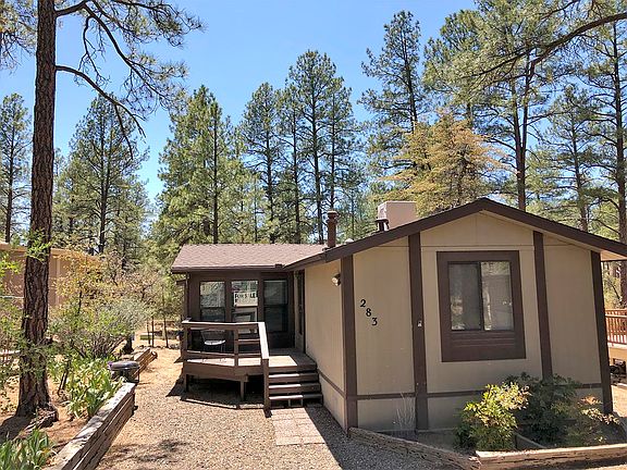 Don't miss out on this rare home available adjacent to Prescott National Forest in wonderful Pine Lakes, a 55+ community. Featuring two outdoor decks, extra storage, vaulted ceilings, split floorplan, kitchen bay windows, ceiling fans, large master bedroom with walk in closet, large second bedroom, lots of windows and surrounded by Ponderosa Pines. Just minutes from all of the amenities of downtown Prescott while enjoying cool country living at it's best. Schedule an appointment today and beat the summer heat. Best Price!!