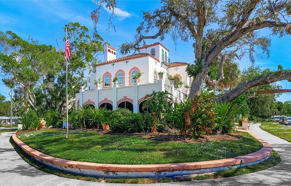 BECOME A PART OF HISTORY-Introducing “La Hacienda del Puesta Sol”, one of Sarasota’s most distinguished historic estates-an extraordinary Spanish Eclectic masterpiece residence built at the height of the 1920’s Florida boom. Positioned just steps from the shimmering waters of Sarasota Bay and Indian Beach, this nearly half-acre gated sanctuary blends architectural mastery, artistic heritage, and timeless history. This is a rare chance to own not just a home, but a legacy. Available for the First time in over Four Decades, The Albert Roehr Estate "La Hacienda del Puesta Sol" - The Estate of the Setting Sun- was officially designated a historical structure by the city of Sarasota, Florida in 1987. It may possibly qualify for National designation. The estate reflects the craftsmanship of its original owner, Albert Roehr, a celebrated artisan whose ornamental ironwork graces the gates of the John Ringling Mansion and landmarks throughout Sarasota and St. Armands. The main residence features 3 bedrooms and 3 full baths, filled with original hardwood floors, a grand hardwood staircase, Italian-style tile, ornate crown molding and original chandeliers. A grand wrap-around screened porch captures breathtaking sunsets and sea breezes, accessible through French doors from the formal living room. The parlor and dining room showcase large sunny windows that keep the home bright and inviting. The kitchen includes natural gas, porcelain tile, Brazilian wood cabinetry with glass display, and stone countertops. The expansive primary suite offers abundant windows, original wood floors, a masonry fireplace, and an en-suite bath. A private third-floor widow’s peak provides a secluded hideaway overlooking the bay, perfect for reflection or inspiration. The second bedroom opens to a rooftop sitting area overlooking Sarasota Bay’s private sunset moments. The property includes a historic carriage house with two rental opportunities: a downstairs studio and an upstairs 2-bed/1-bath apartment, each with separate entries. Short-term rentals (7-day minimum) are allowed, creating three potential income-producing residences on one property. The artistic courtyard is a sanctuary—designed by the current owner, well-known commercial artist Norton Rock—resembles an old-world Italian street with a fountain, reflecting pool, concrete arches, and mosaics. It has hosted lavish events for ambassadors, business leaders, artists, and dignitaries and was often used as a creative setting for Ringling art students. Set in the desirable Ringling neighborhood near the John & Mabel Ringling Museum and Mansion, this estate is minutes from downtown Sarasota, SRQ Airport, beaches, restaurants, and cultural attractions. With a legacy of distinguished owners and residents—including Roehr himself, Herald-Tribune Editor George Lindsay, and well known historian and author Karl H. Grismer—this residence is more than a home. It is an irreplaceable piece of Sarasota history. For those who feel drawn to authenticity, craftsmanship, and story—this isn’t just a home. This is your invitation to become part of Sarasota’s history. PLEASE VIEW VIRTUAL TOUR VIDEO