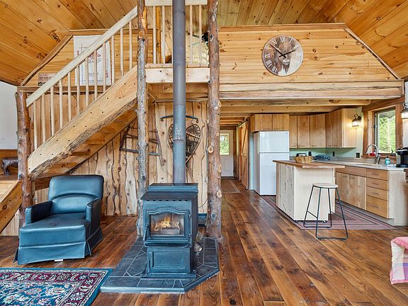 Lovingly built over a number of years with wood milled from the property's own trees, this modern take on an off-grid cabin has to be seen in-person to be appreciated. The last 1/2 mile to the property is on a class IV road. You'll feel the stress of everyday life melt away as you enter the absolute quiet of this 8-acre haven. Outside, you'll find extensive rock walls, a babbling stream, plenty of flat yard space for games or a garden, and beautiful views of the surrounding hills. Inside, you'll find craftsmanship and fine details rarely seen. Whimsical touches like live edge wood trim and log bannisters and support beams are paired with modern appliances and a cozy Harman pellet stove for the perfect mix of modern comforts and storybook nostalgia. Leased solar panels and batteries handle the majority of the electric load and there's a whole-house propane generator for cloudy days. A 3-bedroom septic provides the option for expansion. The house comes furnished for immediate enjoyment. Showings begin with open houses on Friday, 5/19 from 12-2 and Saturday 5/20 from 10-12.