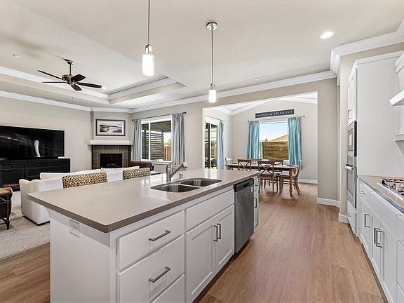 Better Than New in SE Redding's Desirable Stonesfair Neighborhood! Welcome to this beautifully upgraded Palomar-built home, just 4 years young and brimming with custom features. Designed to be the model home, this property stands out with thoughtful touches, modern elegance, and energy-efficient construction. Enjoy a functional split floor plan with four spacious bedrooms and three baths, offering privacy with the primary suite tucked away on its own wing. The heart of the home is the stunning white designer kitchen, highlighted by a striking pearl-like scalloped backsplash, elegant crown molding, and an inviting fireplace that adds warmth and charm to the open living area. Step outside to a fantastic patio pergola, ideal for outdoor entertaining. The backyard is ready for fun with raised garden beds and a decomposed granite play area, perfect for bocce ball, corn hole, or your favorite outdoor games. Built with 2x6 construction and Green Technology, this home combines durability with smart energy efficiency. Add in shade screens on the windows, a spacious three-car garage, and room for RV parking, and you've got the perfect blend of comfort, style, and practicality. Located in a sought-after neighborhood featuring the brand-new Shastina Ranch Park, this home truly has it allmodern amenities, curb appeal, and a community feel.