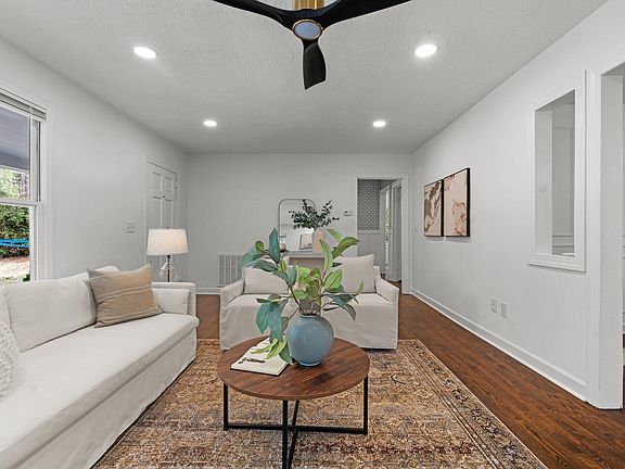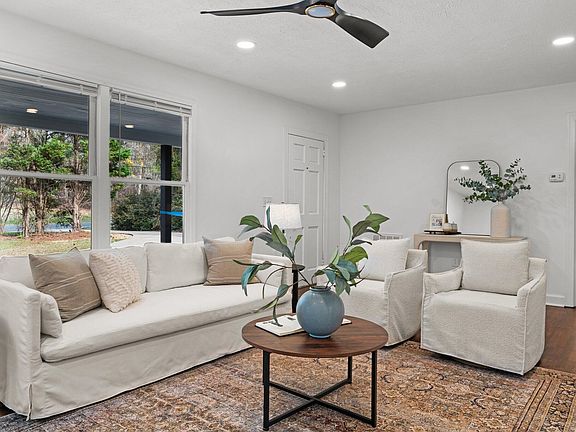 Welcome to this charming country home! Renovated with respect for its history, it still boasts original hardwood floors, doors, and crystal doorknobs, preserving its historic charm! In the front of the house, you have a circular driveway, a large front porch, and mature evergreen trees which create the perfect private lot. As you walk in, you're greeted with a formal living room filled with natural light and a wood burning fireplace. Moving into the dining room and kitchen area, you have a picture frame accent wall, marble countertops with a peninsula/bar area, stainless steel appliances, and brand-new cabinets! The master bedroom/bathroom has a beautiful accent wall, crystal chandelier, walk-in shower, and a double vanity that also has marble countertops! At the back of the house, you'll find a large laundry/mudroom that leads to the backyard. The backyard has brand new sod, a deck, a fence on both sides for privacy, and a beautiful deep lot! The roof was replaced within the last six months, hot water heater is 2024, HVAC is 2020. Brand new insulation in crawlspace. new sump pump, and new vapor barrier! Located in sought-after North Sanford, just 20 mins to Apex/Holly Springs, and 30 mins to RTP. Experience rural serenity with urban convenience!
