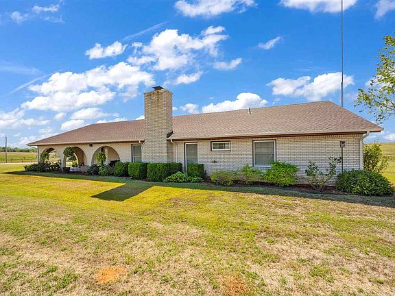 Welcome to this custom-built, 1 owner, Spanish-style property, nestled on 2 acres in Marlow, OK. It offers approximately 3,200 square feet and has been very meticulously maintained. The charm of the home is evident in its welcoming front and back verandas, with one having an opening in the roof that allows rainwater to come in over a plant watering station. French drains disperse the excess water out to the yard. Inside, the craftsmanship shines with custom refinished tough mahogany cabinetry, a wood-burning fireplace connected to 1 of 2 HVAC systems, and a formal dining room. The kitchen is well designed and has a large island equipped with electrical outlets, water lines, and drain connections for a second sink. It has a reverse osmosis system along with like-new stainless-steel appliances. The oversized utility room along with a large pantry offer ample storage options. The office is just off the 2-car garage and includes custom built-in shelving. The property has had many upgrades including bathroom remodels, new windows in 2010 and a brand-new roof installed in July 2024. Outside, mature landscaping frames the home, and the flower beds are serviced by a drip irrigation system. The property's water source is an 80-foot water well and the nearly half-acre garden has yielded abundant vegetable harvests over the years. A chicken coop with a brooder pen adds to the rural charm. This property is complete with a 30x40 spray foam insulated workshop featuring a concrete floor, rough-in plumbing for a sink, and 200-amp service. Additional features include a 7x14 storm cellar with shelving for food storage along with a dehumidifier. The Starlink internet equipment remains with the home. Contact listing broker Leah Eary at 405-370-5948 for more information.