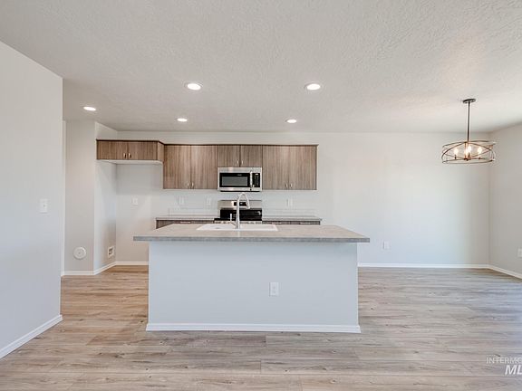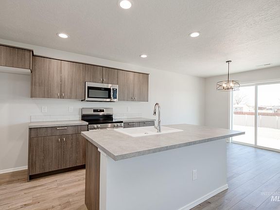 Feel enriched in your brand new home located in Kuna, Idaho! Welcome home to the timeless Poe 1471! Here you'll enjoy a thoughtfully laid out living space with an open concept main level and all three bedrooms tucked upstairs. The kitchen island overlooks the living area so you can host guests while staying at the center of the action. Easily slip outside for some fresh air on the back patio off the dining room. The spacious kitchen is perfect for meal prep and entertaining, featuring modern appliances and ample counter space. Retreat upstairs where the primary suite and two other bedrooms await, offering a peaceful sanctuary. The primary suite includes a large walk-in closet and a luxurious en suite bathroom. Photos are similar. All selections are subject to change without notice, please call to verify.