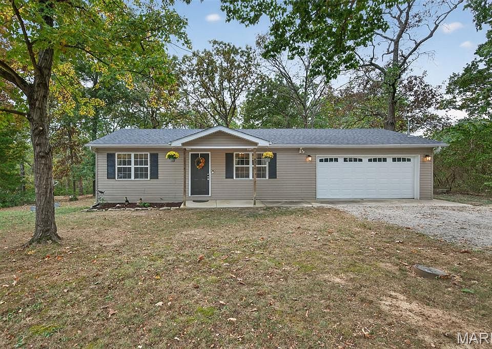 Start the life you’ve been waiting for with a move-in ready interior and a rare half-acre of peaceful, fresh-air living. Step onto the welcoming front porch and into the home where you’ll immediately notice the wood floors, natural light from double-pane windows, and the easy, single-level flow. The living room leads to the eat-in kitchen with beautiful custom cabinets, updated countertops, stainless steel appliances and pantry. Down the hall is the 2 bedrooms and full bathroom. Immediately off of the kitchen is the main floor laundry room, which leads to the spacious 2 car garage with workshop potential. Outside, mature trees create a private, wooded backdrop and a large, low-maintenance backyard with easy-care landscaping and room for a fire pit or garden. You are tucked just off US-67 for quick highway access, about 10 minutes to Festus and De Soto for groceries, restaurants, and shopping, and roughly 15 minutes to St. Francois State Park. Roads are serviced during winter weather. Roof (2021) Water Heater (2025) Updated Windows, Kitchen / Bathroom, and Siding. Public Water / Sewer and High Speed Internet available. Schedule your tour today!
