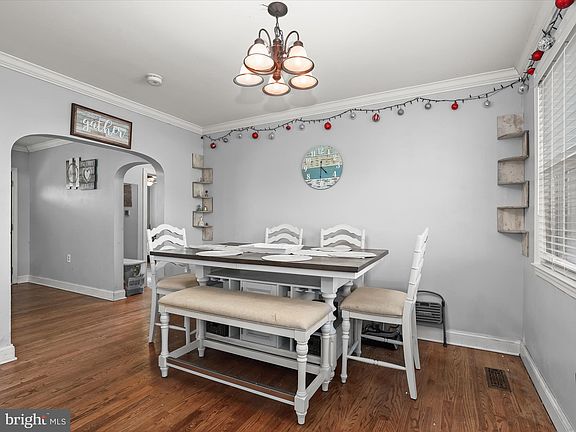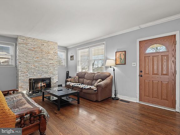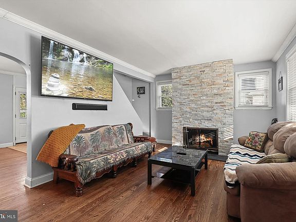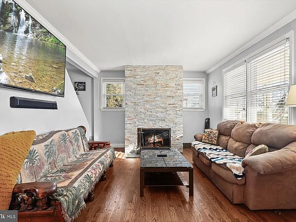 Nestled in the Baltimore Highlands community, this charming home boasts hardwood floors, arched doorways, crown moldings, and light filled interiors. The inviting living room, anchored by a cozy stone-profile fireplace, seamlessly flows into the dining room, creating a warm and welcoming atmosphere. The eat-in kitchen is beautifully appointed with granite countertops, decorative backsplash, and stainless steel appliances. Two bedrooms, each featuring hardwood floors, and a full bath complete the main level. Upstairs, the spacious primary suite offers hardwood floors, a walk-in closet, and an en-suite full bath. The lower level provides a versatile recreation room, a laundry room, and ample storage. Roof replaced 2020. Outdoor highlights include a covered front porch, a fenced backyard, secure storage, and a convenient carport and extended driveway offering ample parking.