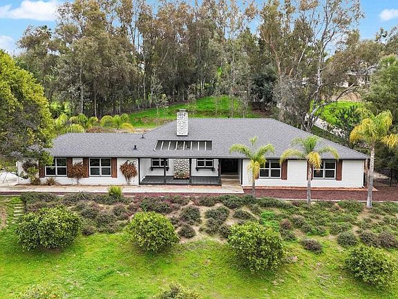 Magnificent single level custom home in the beautiful location of South Fallbrook! Fully fenced, this 3 bedroom, 2.5 bathroom home sits on a gorgeous lot that is just under 1 acre. Recent upgrades include new Milgard windows, new interior and exterior paint, new roof, new interior and exterior LED lighting, new ceiling fans, and new carpet. High quality Anderson doors, hickory plank flooring, stainless steel appliances, granite countertops, maple kitchen cabinets and two wood burning fireplaces make this quality home stand out. Oversized bedrooms with generous closet space are standard! The fully irrigated fruit orchard includes a variety of mature fruit trees including orange, grapefruit, plum, lemon, lime, pomegranate, pear and more. The extremely oversized two car garage includes a sink and has 220v electric installed. Visit with family and friends on over 1000 sq feet of outdoor patio space. Don't miss this one!(some photos have been virtually staged)