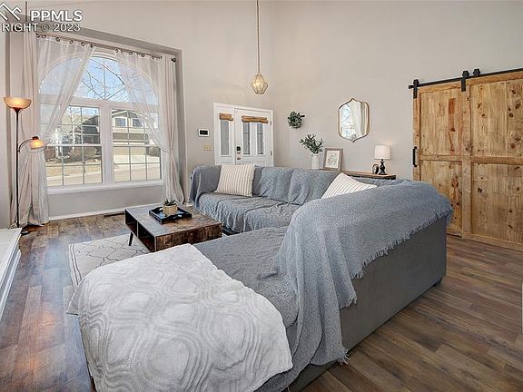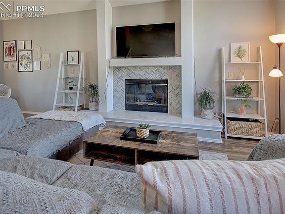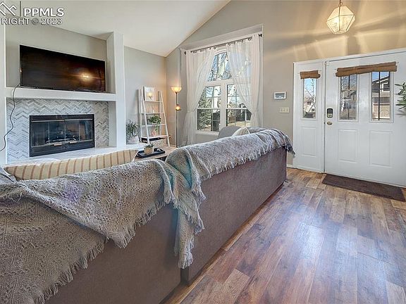 4 Bed, 3 1/2 Bath home conveniently located in highly desired 80922 Powers corridor. Easy access to Peterson Rd. Less than 5 minutes from Peterson Air Force Base, schools, shopping centers, and restaurants. This nicely maintained 2 Story home features and open floorplan with beautiful wood laminate flooring on the entire main level and a beautiful remodeled fireplace, fresh interior paint. there are 2 walk outs on the main level the fully fenced spacious backyard with a large patio for entertaining along with a gazebo and pergola for privacy. The upper level features large master bedroom with a walk in closet and adjoining 5 piece master bathroom suite including separate shower, double sinks and a large oval soaking tub and 2 additional bedrooms and a full updated bathroom. The newly finished basement features a family room and 4th bedroom and a 3/4 updated bathroom. Also enjoy extended driveway and added concrete path. No popcorn ceiling's here! Come take a look.