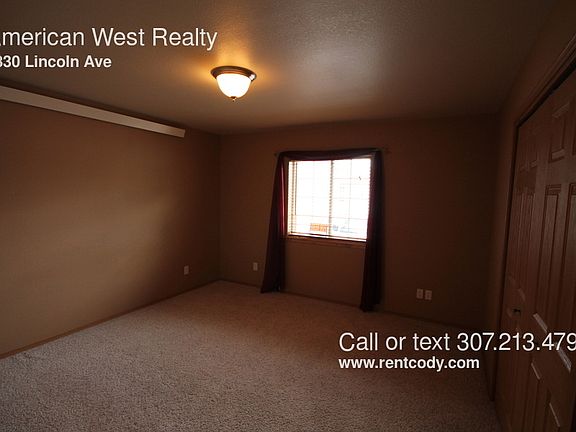 SCHEDULE A SHOWING ONLINE AT: showmojo.com/lh/fa7029b058 This beautiful townhome was built in 2004 with a modern floorplan and lots of space. This is low-maintenance living at its finest because the HOA manages the exterior, to include the lawn and shared park. There is an attached 1-car garage with opener and one additional parking space in front of the home. There is plenty of guest parking just 20 feet away. The main floor includes an open living room with gas fireplace, newer carpet and paint, tile floor, and a fully equipped kitchen with fridge, stove, microwave, and dishwasher. Two large bedrooms are split by a bathroom with dual sinks, a walk-in shower and a large jetted tub. The washer and dryer are included and located on the main floor. The basement is fully finished with a family room, over-sized bedroom, office, a full bathroom, and two storage rooms. One window A/C unit on the main floor is sufficient for cooling the home. A small deck in back can fit a grill and a couple chairs. Contact American West Realty for more information or to apply. Air Conditioning Window Units Assigned Outdoor Parking Cable Ready Ceiling Fan Deck / Porch Fireplace, Gas Garage Heat Baseboard Electric Jetted Tub, Hot Tub, Or Spa Kitchen Dishwasher Kitchen Garbage Disposal Kitchen Microwave Kitchen Refrigerator Kitchen Stove / Oven Utility Fireplace Utility Black Hills Energy Utility City Of Cody (Water, Electric, Sewer, Trash) Washer/Dryer In Unit