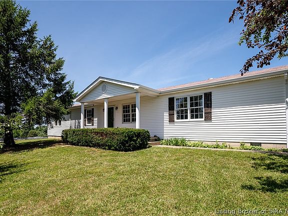 Look no further for tranquil living, this 12 acres offers you your own slice of secluded heaven, only minutes to Patoka Lake. The expansive covered back deck provides the best views for your morning coffee, overlooking the grounds and wildlife galore. This 3 BR/2+BA home has an open floor plan with completely renovated kitchen featuring granite, backsplash, all appliances, pantry, and enormous island workstation w/ breakfast bar that opens to the large formal dining room. Oversized living area has access to both the front covered porch and rear covered deck.