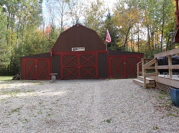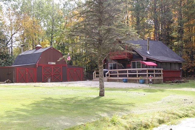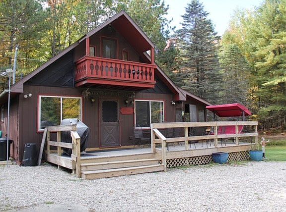 Chalet with master bedroom and bath on main floor, 2 bedrooms upstairs, screened in porch and large deck. Barn style garage with loft, car ports on both sides. Nestled back in woods on .85 of an acre, very quiet and peaceful. Centrally located in state, short drive to your favorite lower Mi destinations. Deeded Tittabawassee River access, flows to Secord Lake.
