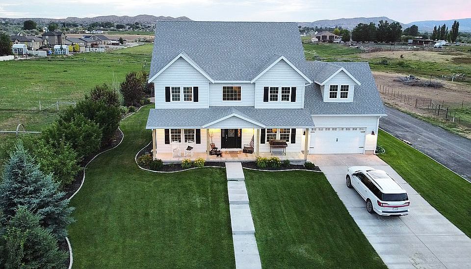 Beautiful farmhouse and horse property on 6.5 acres in Vernal. 5 bedroom 3.5 bath and 4,415 sq feet. This home is filled with tons of windows, thoughtful trim work, solid oak floors and a stunning staircase. In the basement there are swings and a play house for the kids, and upstairs a HUGE family laundry room that is conveniently located close to the bedrooms. There’s a mudroom and a dining room complete with a darling butler’s pantry to showcase Grandma’s china. We love this home for entertaining family and friends both indoors and out. The yard has been professionally landscaped with a gas fire pit, built-in basketball banker, bmx bike track, giant swing set and zipline with a tower. Your kids will never want to leave home! Property is on Greenbelt and comes with wheel lines, water shares, and well with temporary pump. Room for chickens in the bird coop and outbuildings and sheds to store all your equipment and toys.