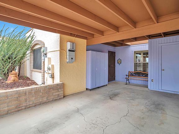 This townhouse exemplifies a fun lifestyle and brings you the desert beauty of Green Valley! Embrace pure renewal as you relax and refresh your spirit in the master bedroom. It's intuitively designed to suit your personal needs with furnishings included. You'll appreciate the screened AZ room for morning coffee and a generous back patio. The laundry room is adorned with a beautiful stained glass door. There is plenty of storage with a cabinet out front and 2 storage closets, one in front and one in back. Solar Power provides extremely low monthly costs. Solar screens on windows as well as classy plantation shutters. It's a perfect winter retreat or great for an investment rental. Enjoy all the amenities that GVR has to offer. There is additional parking across the street for your guests.