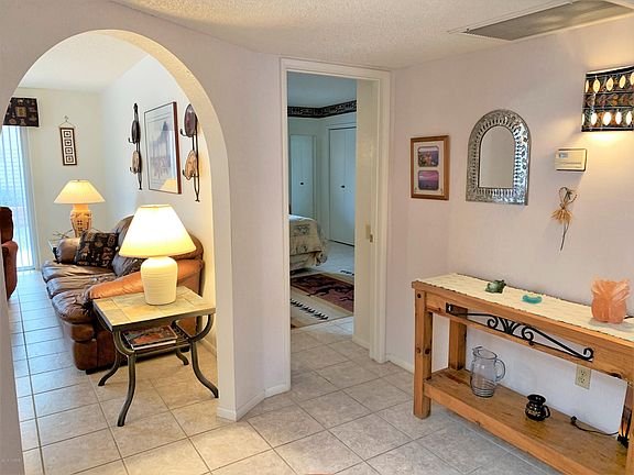 Perfect snowbird retreat, with lovely front porch views on the pavered courtyard. This fully furnished home is perfect to walk into and begin enjoying all the amenities Green Valley has to offer. Step into this bright town home and you'll find a spacious eat-in kitchen with plenty of cabinets and counter space, a large living room and a master suite with dual closets. The ensuite in the master has a large step-in tile shower for easy accessibility. The guest room in nestled on the opposite side of the master for extra privacy for guests. Fully tiled throughout for easy maintenance. The backyard offers plenty of privacy and a full length porch to enjoy the AZ weather. Close to golfing and GVR centers, this home will be snapped up quick!