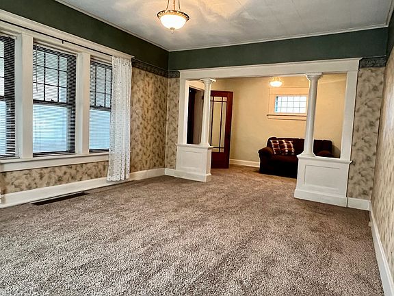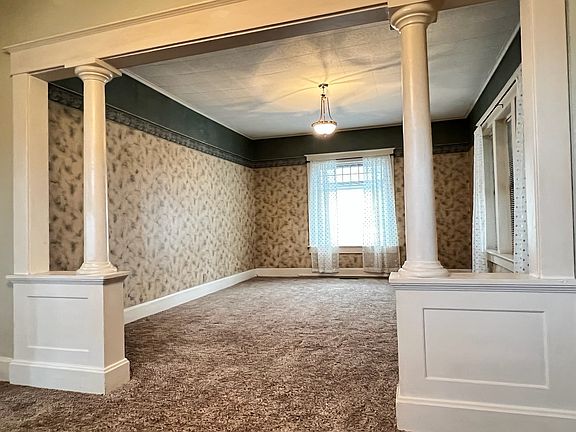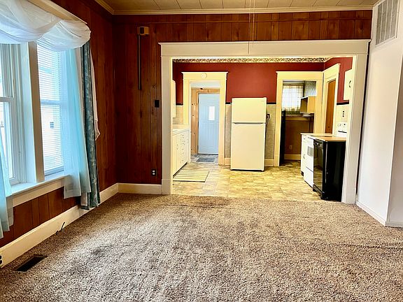 So much potential! This is a great starter home or investment property. Enclosed sunroom/front porch. Charming woodwork walking in leads to the living/dining room area. The 2 bedrooms are over average size with big closets. Kitchen is large and has a pantry area. There's a W/D hookup on the main level as well as in the basement. The basement is dry and can be updated for a rec room. New metal roof, WH 2017 and HVAC is newer. 2 car garage and also a carriage house for added storage. Property is in an Estate.