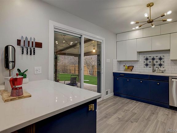 Welcome to this fantastic ranch-style home nestled in the peaceful neighborhood, Holly Hills. Boasting a newly updated kitchen with newer appliances, four spacious bedrooms, two full bathrooms, and ample space for comfortable living. The expansive private backyard provides a serene retreat, perfect for outdoor gatherings and relaxation. Descend into the fully finished basement, where you will discover a cozy family room with a built-in surround system, bar area for entertaining, a bedroom, and a full bathroom, providing versatility and extra living space. This home seamlessly combines modern amenities with classic charm, offering the perfect blend of style and functionality for your everyday enjoyment. *Newer roof, new hot water heater, new HVAC, newer paint throughout interior, updated kitchen, newer appliances, and updated bathrooms. Close to highways, shopping, and the highline canal.