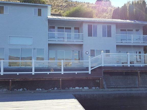 2110 SF lake house with huge deck, dock and boat lift. Lower level all open w/kitchen, eating area, dining, vaulted ceiling in living area with lake access. Upper level, master bed/bath/balcony, 2 bed with connecting balcony and full bath.Large deck with dock and stairs into Lake Chelan. This property has been placed in an upcoming auction event. Buyers to do due diligence regarding room count.