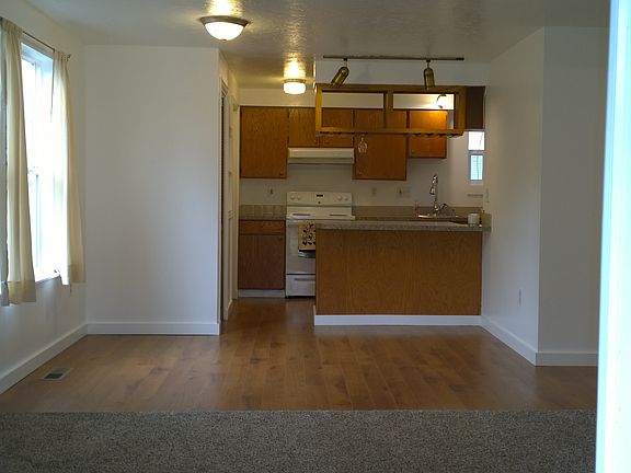 Common wall home Ready to move in! New paint in and out, new carpet and laminate floors, new stove and exhaust fan, new counters. Enjoy eating bar and skylight, living room with wall air-conditioner and French doors to covered patio. Fenced back yard with Japanese maple and garden shed. Master bedroom with full wall closet and ceiling fan. 1 car attached garage is fully insulated and wired 220 for welder, etc,with washer and dryer hook ups and shelving. Heat is forced air gas and gas hot water heater. Handy to grade school and sports park. Great Starter Home .