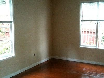 This house is a dream set amid flowering trees and bushes.Large, L-Shaped Living/Dining Room combo with built-in shelves on the wall for books and creative/decorative use and three large windows that let in plenty of light. Hardwood floors in living room/dining room, hallway and first bedroom. The kitchen is cozy and bright, with two large windows, good counter space, as well as plenty of cabinets for storage. Deep sink for added convenience. Gas stove and oven. Bathroom has spacious, built-in tiled shower with seat on either side. Hallway has built-in closets for linen storage (or whatever you choose). First bedroom has large, built-in closet on wall with three large drawers, as well as upper shelf . Bedroom features a large window looking out onto camellia trees alongside the house. Second bedroom is smaller. It's carpeted and has good-sized closet with removable shelves along both sides.The second bedroom leads out to the rear deck. There is a large redwood tree right at the back of the home by the deck, providing shade. Rear deck is outfitted with a roof and a built-in cabinet with washer and dryer (gas) hookups.The back yard on this property is HUGE. Gardeners Welcome! Yard features many old-growth fruit trees with plenty of space for gardening and patio areas. Fenced yard with an automatic gate for added privacy and safety. This is a SHARED yard with your immediate neighbors. Newly installed central heating keeps the whole house warm and toasty on those chilly days and nights. The house is set up for ADT and is cable-ready.Nice neighborhood with friendly neighbors. Walking distance from Farmer Joe's, coffee shops, restaurants, banks, shops and parks. 10 min drive to Alameda's Park Blvd neighborhood. 5 min drive to Lake Merritt. 20-25 min commute to SF. AC Transit and BART nearby.First and last month rent, deposit, month to month.Landlord pays garbage, tenant pays water, gas, electric, cable.