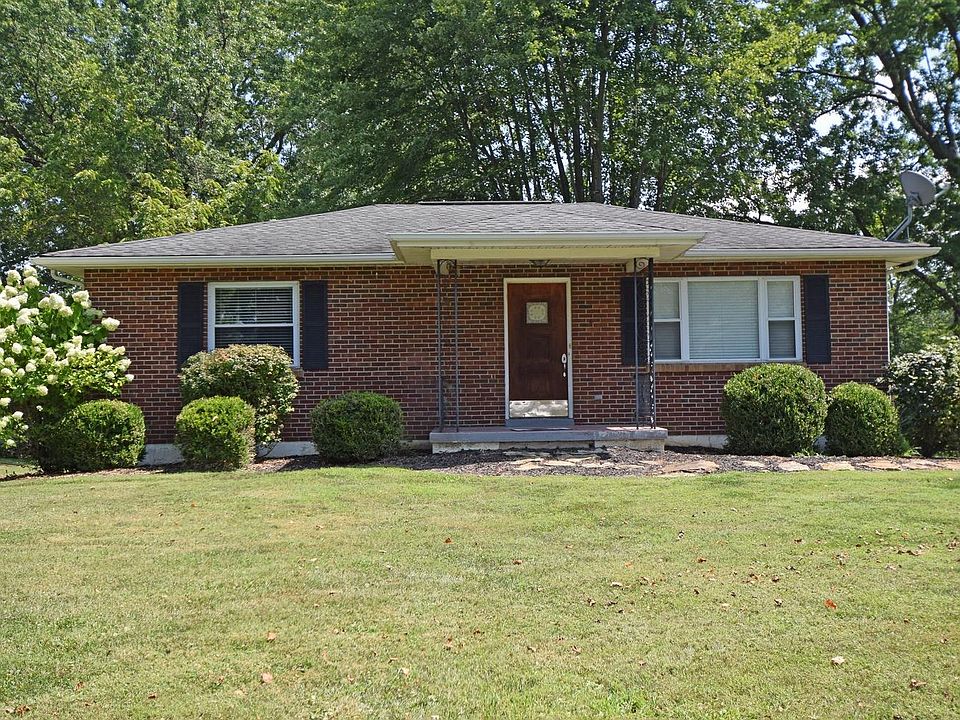 Solid brick ranch home sits on .65 park like yard w/ 2 entrances and exits. Gleaming hardwood original floors. Newer roof & HVAC, HWH, Paint, LL partially finished. Walkout. USDA area.