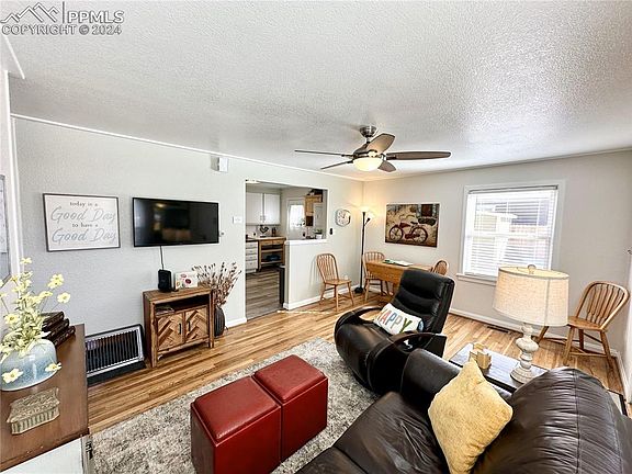 Nestled on a serene corner lot, this charming two-bedroom, one-full-bath rancher exudes timeless beauty and functionality. With a spacious, oversized 400 square foot one-car garage, it offers ample storage and convenience. The interior boasts an inviting layout, beautiful hardwood flooring in the open living room and bedrooms, adorned with tasteful finishes, views of the mountains and Pikes Peak and abundant natural light. The well-appointed and open kitchen features modern stainless-steel appliances and ample counter space, perfect for culinary enthusiasts. Relax and unwind in the cozy living room, or retreat to the tranquil bedrooms for restful nights. This immaculate property is fenced on three sides to include cross fencing in the backyard, nicely zeroscaped, large concrete backyard patio with pavers along the East side of the house. Updated sewer line clean outs on the Westside. The property's zoning as R4 ensures flexibility for potential future use, making it an ideal investment opportunity. Enjoy the best of comfort, convenience, and potential in this delightful home. Close to all amenities, Old Colorado City, Manitou, Red Rocks Open Space, Garden of the Gods, I-25 and Hwy 24, hiking/biking/restaurants etc.... Don't Miss It!!!