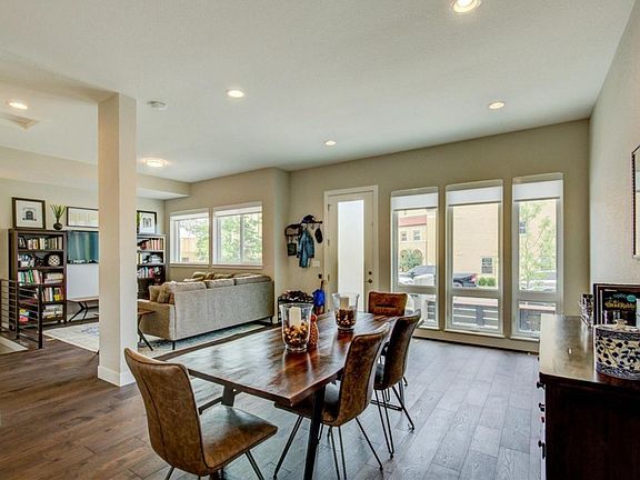 This rare modern ranch-style end-unit townhome in the sought-after Aria community features impeccable designer finishes. Step inside and be greeted by the first floor, featuring a master bedroom complete with a oversized walk-in shower. The open floorplan seamlessly integrates the living room, dining area, and kitchen. This townhome stands out with a gated oversized backyard. There is a dedicated rock area ideal for your dogs needs. Additionally, a charming front porch provides a secondary outdoor living space. Parking is an absolute breeze, thanks to the detached one-car garage and dedicated carport, accommodating two vehicles. Additionally, the property is equipped with an 80 amp 240v EV charger for high-speed charging and a battery power backup system in case of a power outage. End unit, which floods the space with abundant natural light through numerous windows. Throughout the residence, premium upgraded finishes. The garage offers ample storage options, and the kitchen boasts top-of-the-line appliances, including a convenient gas stove. Your safety and peace of mind are assured with a radon mitigation system in the finished basement that ensures a healthy environment. This townhome enjoys exceptional convenience, with easy access to major highways such as I-70, I-76, I-25, and a nearby light rail station. The property is less then a 10-minute drive of the vibrant neighborhoods of Rino, Tennyson, and Lohi. Highlands/Sunnyside is a mere 5-minute drive away, while the prestigious Regis University sits right across the street. A 10-24 month lease term is available for this remarkable townhome. For enhanced security, tenants have Nest security monitoring for the front door and backyard cameras. Well behaved animals allowed.