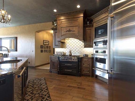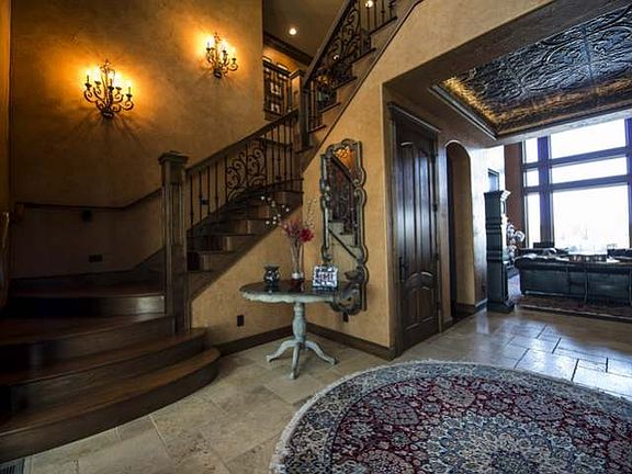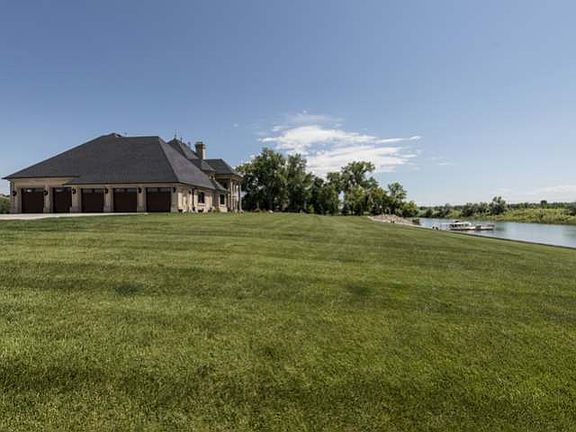 The Ultimate in Privacy...ULTRA EXCLUSIVE ONE OF A KIND 2.3 ACRE WATERFRONT ESTATE. This estate is artisan crafted in the Beaux Arts style. The most exclusive gated private setting in the Bismarck area. Situated 2 minutes from North Bismarck, a private drive leads to a massive 19' wrought iron and glass front entry. Inside the floors are covered in custom clear alder and travertine. The great room has 21.5' ceilings, giant fireplace, and breathtaking views of the River. The stunning kitchen has a granite island, Viking appliances and walk in pantry. Main level master has heated floors, steam shower, and walk in closet. Main level library is wrapped floor to ceiling in hardwood.4 bedrooms total, all with custom tile and glass showers. Upper floor offers a sound proofed theater. Massive back yard stamped patio has a concrete walkway to the boat dock with air lift and Jet Ski port. The 5 oversize garages have heat, AC, hot /cold water, floor drains, dog wash, hoist & flat screen TV.