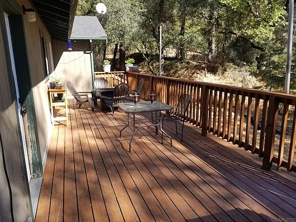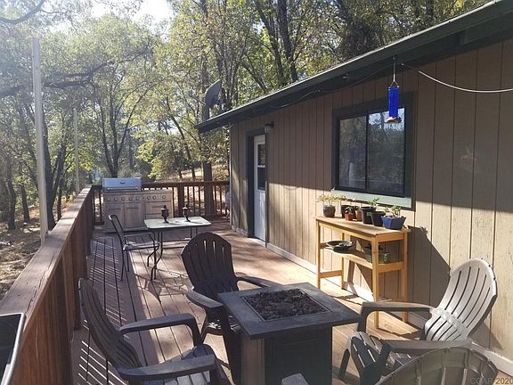 Perfect get-away and great starter home. Just off the highway for easy access to this lovely 2 bedroom 2 bath home. New roof and well. Kitchen counters and appliances newly updated. Nice large wrap around deck to enjoy the view of your 4.57 acres. Lots of storage under the deck and a couple of outbuilding. Lots of flat areas to work with. Artesian well on lower part of property.