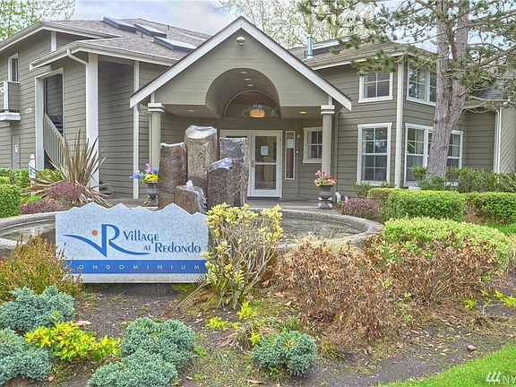 Own your own condo minutes from Redondo! 1 bed 1 bath top floor unit features generous living space with a cozy wood fireplace. Enjoy bright open kitchen complete with stainless steel appliances. Dining area opens to private deck overlooking well-maintained grounds. Large master bedroom, bath and walk-in closet. Clubhouse offers exercise room, sport court, outdoor pool & hot tub. Excellent location close to I-5, 99, dining & shopping. Starbucks right around the corner! Condo is move-in ready!
