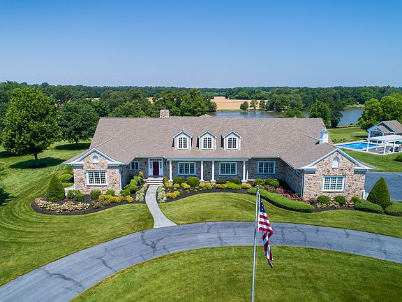 Magnificent waterfront estate on 25 ac consisting of 2 wf lots. Gorgeous fieldstone home w/master suite, 2 large private multi-room guest bedrooms with ensuite baths, 2nd fl guest suite with kitchen, octagonal great rm, formal dining rm, 9' ceilings, 2 gas fireplaces, 4-zone HVAC, & 4-car heated garage. Waterside pool, pool house, pergola, 850' landscaped shoreline. Pier w/3'MLW, 2 lifts.